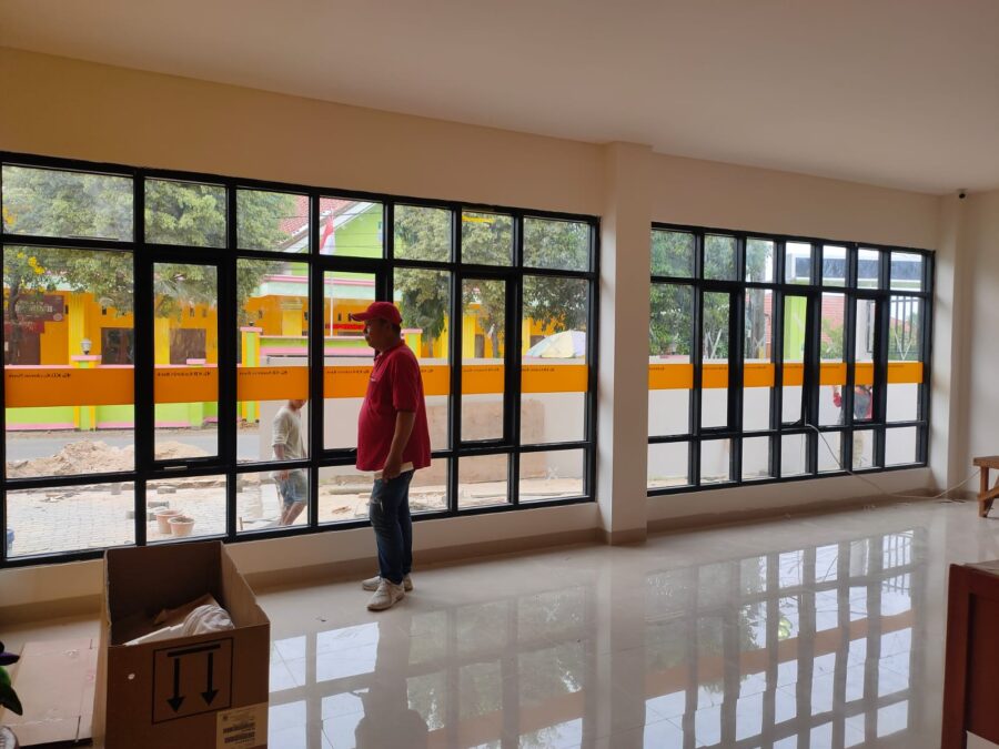 Gambar di bawah ini adalah kaca yang sudah kami lapisi dengan Kaca film 3m dengan spesifikasi 60% type Black Beauty yang masih bisa tembus pandang dengan warna tampilan dari sisi luar warna hitam